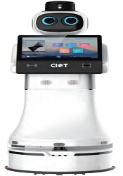 迎宾巡更机器人是一款提供迎宾服务、展示介绍、导引讲解、服务咨询和安保巡逻等功能的服务机器人,可用于生活中的服务行业。迎宾巡更机器人具备自主导航行走、语音交互、人机交互、导览讲解、人脸识别、自主避障、视频通话及监控等功能。迎宾巡更机器人在机械学院门厅设置了A段电梯、B段电梯、卫生间、迎宾点、充电点,机器人在听到唤醒词后,机器人将自主运行到目标点。