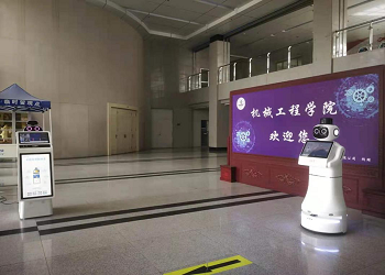 4月27日下午2点,tyc7111cc太阳成集团与深圳科卫机器人科技有限公司与机械楼开展产学研合作,在机械工程学院部署了AGV服务机器人应用示范项目,包括智能测温门岗机器人和迎宾巡更机器人。