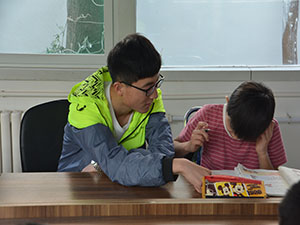 早上七点四十分,队员们准时来到太阳成tyc7111cc新西门,乘车去往饮虎池社区,然后开始一上午的志愿活动。来到饮虎池社区,志愿者们先简单的整理了辅导站活动室内的桌椅,为孩子们营造了良好的学习环境。在孩子陆续到达辅导站之后,便开始了一上午的辅导工作。在辅导过程中孩子们有不懂的地方就纷纷向志愿者哥哥姐姐们请教,志愿者们也非常耐心地为孩子们讲解。志愿者们还给孩子们讲述了他们的大学生活,给孩子们树立起榜样,孩子们对此也很感兴趣,整个辅导站洋溢着欢声笑语。