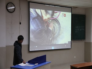 晚上六点,同学们就早早地到达培训地点。半小时后,培训准时开始。首先。义务修车服务队部长对自行车各个部分做了简介,使同学们能够更好地了解自行车各个结构,为同学们修车活动打下坚实的理论基础。工欲善其事必先利其器,随后,他采取提问的方式,结合同学们的回答介绍了扳手、虎钳、螺丝刀等常见的修车工具并讲解了使用方法。最后,他播放了一段专业修车的视频,让队员们实际体会到工具的用法以及修车的步骤,同时针对电动车补胎、车闸不灵等常见故障修理进行深入讲解。培训接近尾声,修车队部长总结了本次活动的内容,并发表了一些自己的看法,讲解冬天修车时注意的细节。在激烈的掌声中,此次活动圆满结束。