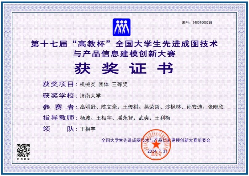 2024年7月26日—7月29日,第十七届全国大学生先进成图技术与产品信息建模创新大赛全国总决赛在贵州大学顺利开展,3700余名参赛队员齐聚贵州大学同场竞技,9000余名参赛队员同步参加线上比赛。我院承担了山东省分赛场赛点任务,为参赛师生提供了场地、设备、网络等保障服务。我院师生荣获国家级二等奖1项、三等奖6项。在5月底的山东省省赛中,我院师生荣获省级一等奖3项、二等奖10项、三等奖4项。
