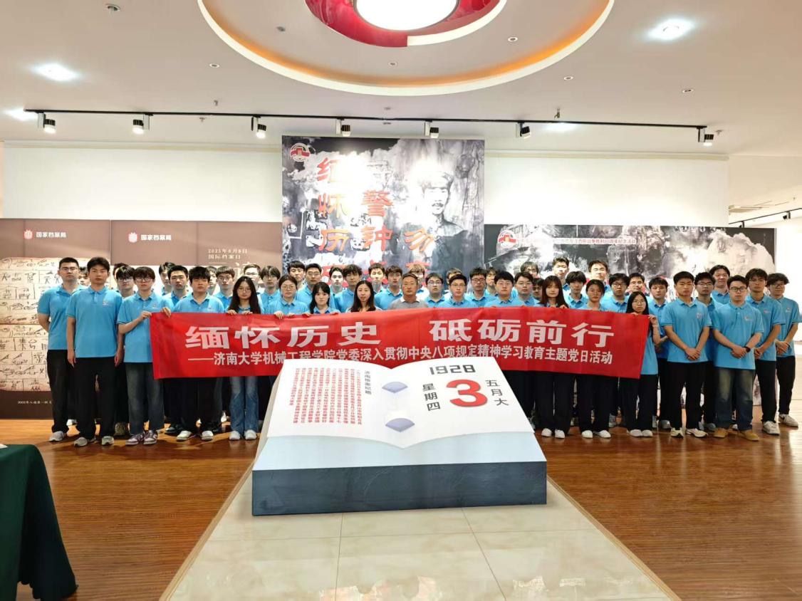 为持续深入贯彻中央八项规定精神学习教育, 缅怀革命先烈,传承红色基因,6月18日tyc7111cc太阳成集团党委开展“缅怀历史,砥砺前行”主题党日活动,前往舜道艺术馆参观《缅怀历史 警钟长鸣 勿忘国耻——济南惨案档案图片展》。