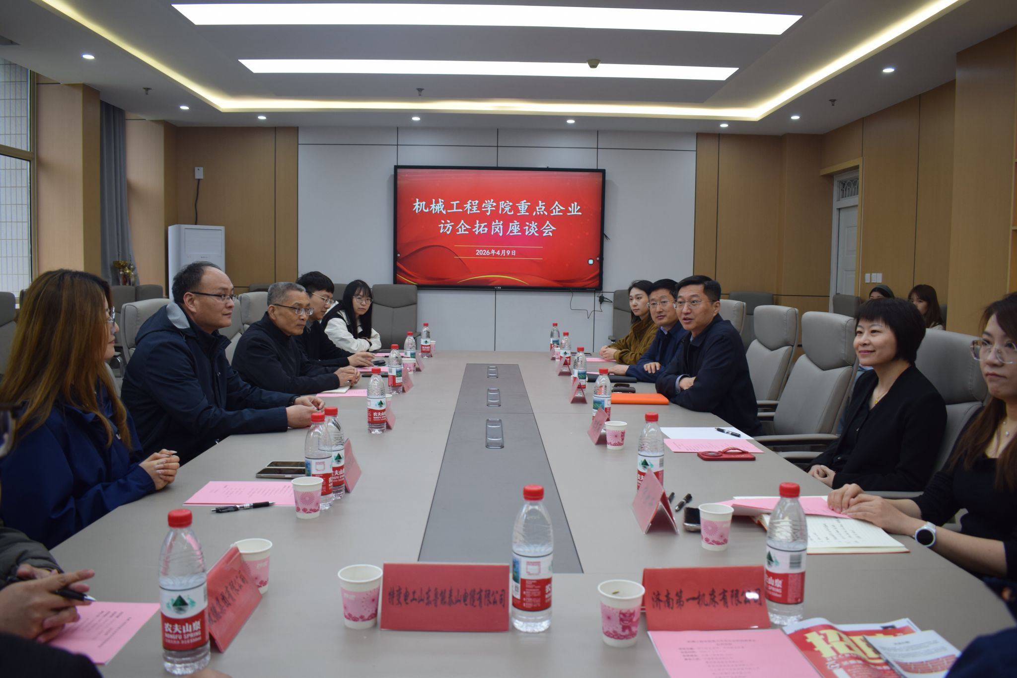 程涛对用人单位表达了感谢。他表示,当前正值2026届毕业生就业攻坚关键时期,学院高度重视毕业生就业工作,将访企拓岗作为深化校企合作、拓宽就业渠道的重要抓手。他希望以此次座谈会为契机,进一步拉近学院与用人单位的距离,搭建更紧密、更长效的合作桥梁,一方面倾听企业对人才培养的需求建议,优化人才培养方案,使学院教学更贴合行业实际、企业需求;另一方面,希望各用人单位继续加大对学院毕业生的招聘力度,给予青年学子更多成长机会,实现“校企携手、供需对接、互利共赢”的良好局面。