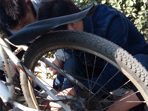 活动开始前,志愿者们早已经提前来到场地并整理了场地,以最好的姿态帮助需要帮助的同学。修车小队分工合作,有的负责搭手传递工具,有的专门拆装链条,还有的在一旁帮忙控制着车体。修理工作有序地进行着,比较专业的学长一边修理一边讲述着车体特别是链条的结构及拆装方法,技能还有些欠缺的志愿者们则一边帮忙一边虚心听取。在众人的共同合作下,修车队员最终将链条顺利换掉,在试骑确认车辆正常运行后,又将其送到要求的位置。之后剩余的活动时间里,虽然再无车主送爱车前来求助,但修车队员们还可以在此交流学习着刚才从学长那学到的技巧。最终,此次义务修车活动在经验交流中圆满结束,每个人都因此次活动收获满满。