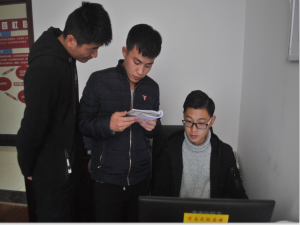 下午13:10,志愿者们准时集合,一同乘坐公交车前往裕园社区。虽然天气寒冷,但志愿者的饱满热情并没有因此减弱,反而更加的高涨。刚到达目的地,志愿者们就开始忙活起来了。工作人员带领着志愿者们将宣传栏从二楼搬运到了一楼,并将关于中共十九大的宣传标语张贴到了正门的宣传栏处。紧接着,志愿者们又来到了休息室,帮助工作人员为老人们录入身份信息,虽然这并不是多么困难的工作,但是志愿者们仍然不敢有丝毫懈怠。三个志愿者分工合作,一人在电脑前打字,一人为打字的同学念录入内容,最后一人检查校正,有条不紊地为社区的老人们录入信息。下午3点半左右,志愿者们带着社区人员的祝福离开了社区。
