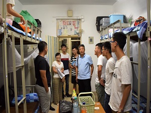经过两个小时的交谈,他们结束了本次探访。探访期间,老师们的关怀之情溢于言表,询问新生们是否住得习惯,有什么要求和建议,并把宿舍损坏的物品一一登记下来,亲自向学校方面反映,切实解决新生们的问题。