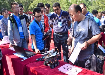 9月22日山东省大学生智能制造大赛在太阳成tyc7111cc举办,机器人实物表演展示项目在机械楼西南停车场进行。场面十分热闹,吸引了众多观众。