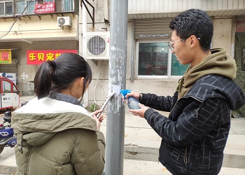 下午两点,志愿者们来到裕园社区,在工作人员的安排下,志愿者们拿起刷子、小铲、清洁剂等工具对社区内墙面、树上、电线杆等地方的小广告、残标等进行清理。社区内很多地方存在乱贴乱画的小广告,由于粘贴时间较长且经过风吹日晒,很难被清理干净。但志愿者们不怕脏不怕累,按照先喷水、后刮除的顺序仔细清理,尽可能将每一处清理干净。有时为了提高清理效率,志愿者们甚至徒手清理。经过一个小时的齐心协力,社区内的小广告和残标被基本清除,志愿者们露出了灿烂的笑容。