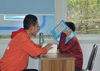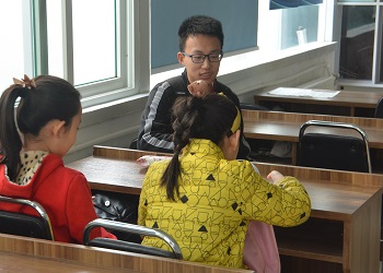 早上八点,志愿者们准时到达饮虎池社区。在与社区工作人员简单的问候和交流之后,志愿者们进入教室,并仔细对教室进行了清理。大约半小时后,孩子们陆续走进教室并开始做自己的周末作业,而志愿者们在一旁负责监督和指导。每当孩子们遇到难题时,志愿者们会耐心且仔细地给他们讲解;孩子们开始偷懒时,志愿者们会进行及时的劝解;孩子们做完作业后,志愿者们会为他们检查作业,找出作业中的错误,并教会他们正确的解法。在孩子们都完成了自己的作业之后,志愿者打开带来的电脑,给孩子们播放有关生活安全的纪录片。孩子们饶有趣味地观看纪录片,志愿者们也在一旁认真观看。看完纪录片后,志愿者们主动和孩子们交流看后的感悟收获。在交流中,孩子们和志愿者的友谊进一步升温。