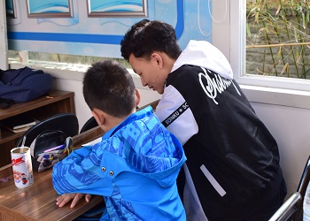 为贯彻志愿者“服务社会”的宗旨,帮社区小学生树立热爱学习观念。4月20日早上,青年志愿者协会组织志愿者来到市中区饮虎池社区,开展志愿服务,为孩子们辅导功课。