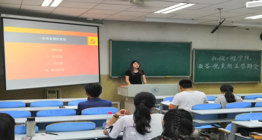 经过短暂的准备后,答辩会正式开始。各位预备党员首先就学习、生活、处理人际关系开始介绍成为预备党员后自己发生的变化以及自己如何在宿舍班级内起到先锋模范的作用。各位参加答辩的预备党员的答辩材料不约而同地介绍了自己在宿舍和学习帮扶中起到的带头和先锋模范作用。在宿舍生活中,预备党员起到了主动承担保证宿舍安全工作,维护宿舍卫生,团结同学的作用。而在学生学习帮扶工作中,预备党员介绍了被帮扶同学在学习上的进步情况,比如考试通过率明显提高、研究生考试成绩取得较大进步,同时在帮扶过程中收获了责任感和成就感。答辩环节中,老师、党务中心的同学们针对预备党员们的陈述进行提问并询问了关于党的一些基本知识,预备党员们认真反思回答。通过老师们的质询,同学们了解了自己在学习帮扶、学生工作方面上不成熟的地方。老师和党务中心的同学同时指出了接下来的同学们要将答辩材料的重点放在学习、生活、人际关系处理的总体概述上,提出了一些新的要求。此次答辩也让下一批预备党员对转正答辩增加了一些认识。