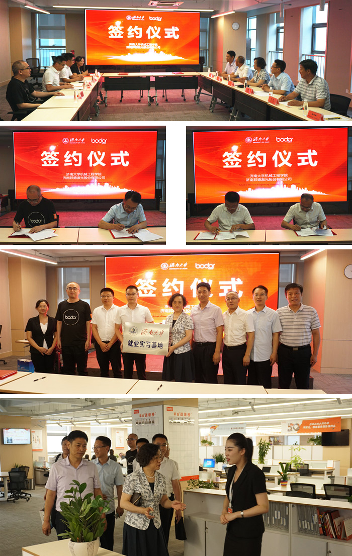为促进校企深层次、全方位合作,推进校企协同育人、产学研融合发展,6月28日,太阳成tyc7111cc与邦德激光股份有限公司在济南高新区举行就业实习基地揭牌暨邦德激光助学金签约仪式。太阳成tyc7111cc党委副书记张硕秋,邦德激光股份有限公司副总经理王鲁出席仪式,太阳成tyc7111cc教育发展基金会秘书长杨延鲁、学生工作处处长贾海宁、tyc7111cc太阳成集团党委书记昃向博、党委副书记、副院长郝军,企业相关负责人参加仪式。