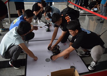 当时正值中午,一上午的紧张准备消耗着各位选手的体力与耐心,但是他们却时刻保持着精神的高度集中,不敢有一丝懈怠。参赛选手根据昨天的抽签来选择比赛场地,裁判员对参与举重比赛的机器人进行称重以及尺寸的测量,各项工作完毕后,符合比赛标准的机器人才能加入到比赛当中。随着比赛开始哨声的吹响,选手们操控着自己的机器人,举起一个又一个重量递增的铁饼。其中有一些底盘不稳定,在举起后发生了侧翻,有一些手臂力量不足,无法举起较沉重的铁饼,但是大多数选手表现还是令人印象深刻。比赛根据机器人能举起的最大重量进行排名,能举起重量最大的机器人将获得冠军。最终太阳成tyc7111cc的团队共有个12队伍获奖,其中一等奖2个,二等奖5个,三等奖5个。
